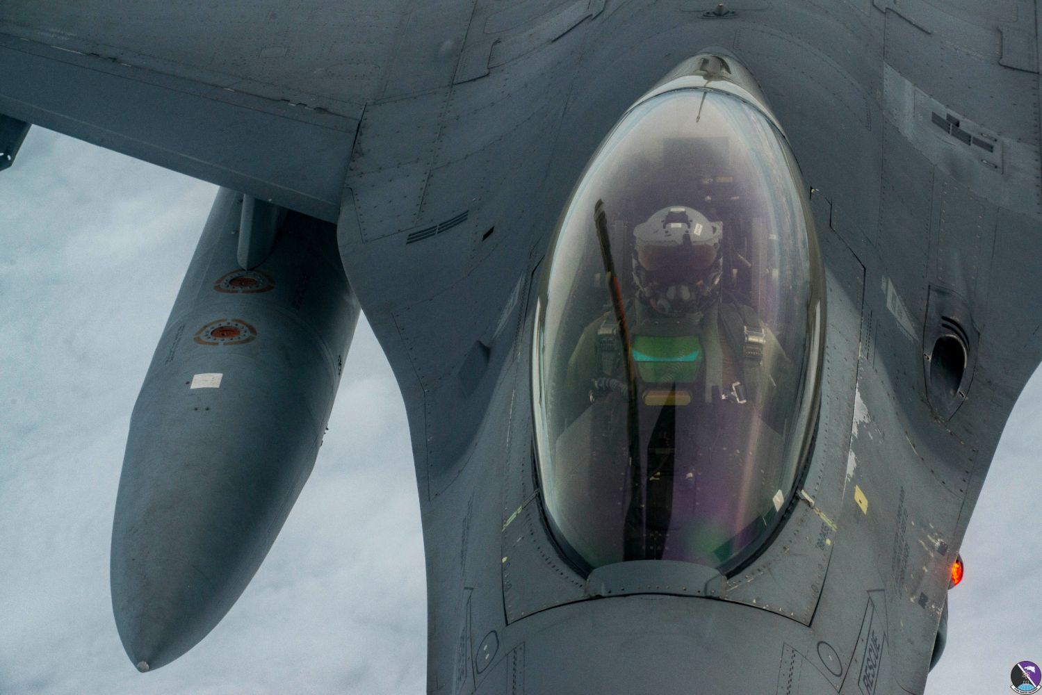 Senior Master Sgt. Brian Jensen, Utah Air National Guard’s 191st Air Refueling Squadron boom operator, hooks up a refueling boom to an Aviano F-16 Fighting Falcon over the Adriatic Sea during a two-week training exercise on Oct. 26, 2016. Jensen used the tube-like boom to transfer fuel from the KC-135 Stratotanker to more than twelve F-16s each day. (U.S. Air Force photo by Airman 1st Class Cory W. Bush/Released)F-16 pilots, KC-135 crews team for mid-air refueling training F-16 pilots, KC-135 crews team for mid-air refueling training